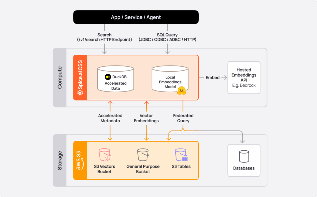 In July, Spice introduced native support for Amazon S3 Vectors as a day 1 launch partner at the AWS Summit in NYC. Vector similarity search, structured filters, joins, and aggregations can now be executed in SQL within Spice without duplicating data.