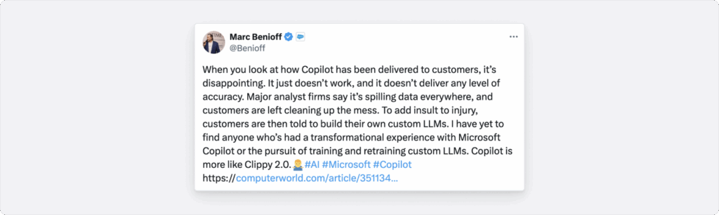 Figure 2: Marc Benioff on the limitations of Copilot