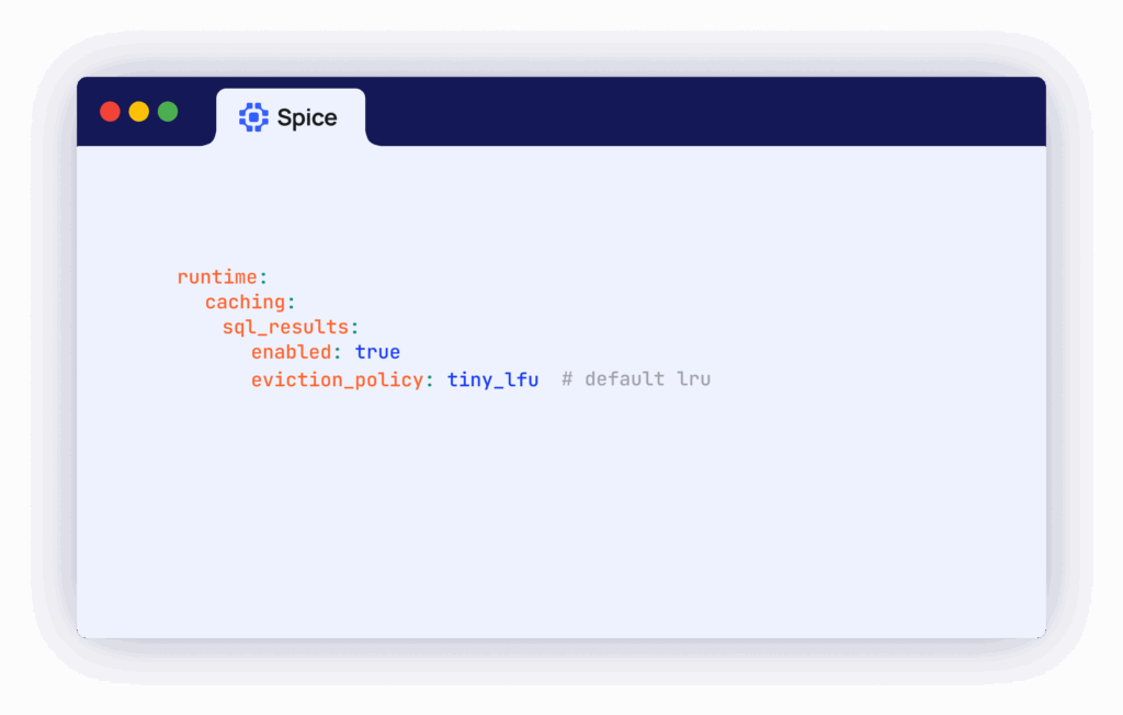 TinyLFU is now available for the SQL results cache! TinyLFU is a probabilistic cache admission policy that maintains higher hit rates than LRU (Least Recently Used) while keeping memory usage predictable, making it ideal for workloads with uneven query patterns