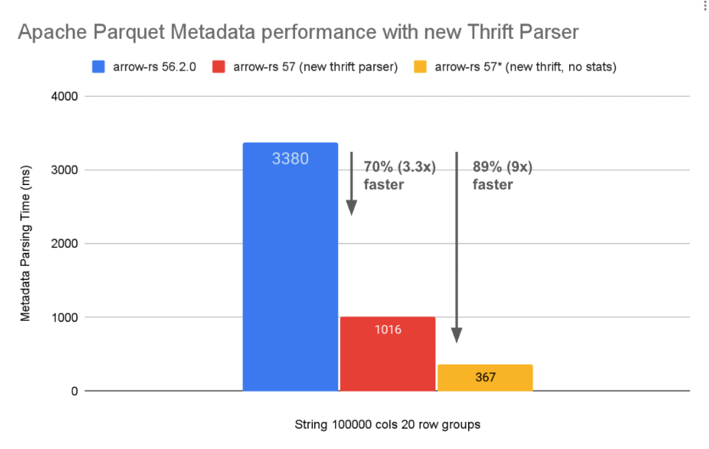 - 4x faster Parquet metadata parsing with rewritten thrift metadata parser