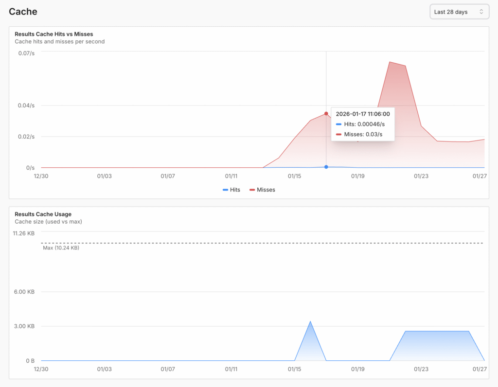 - Fixed cache hit detection: Queries now correctly detect cached data