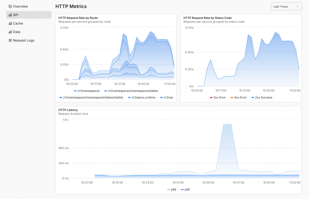 New real-time dashboards give you complete visibility into API performance, data egress, and cache efficiency - so you can optimize costs and catch issues before they impact users.